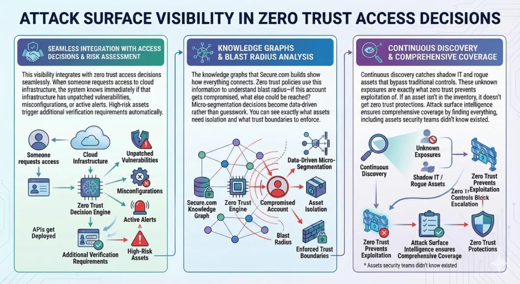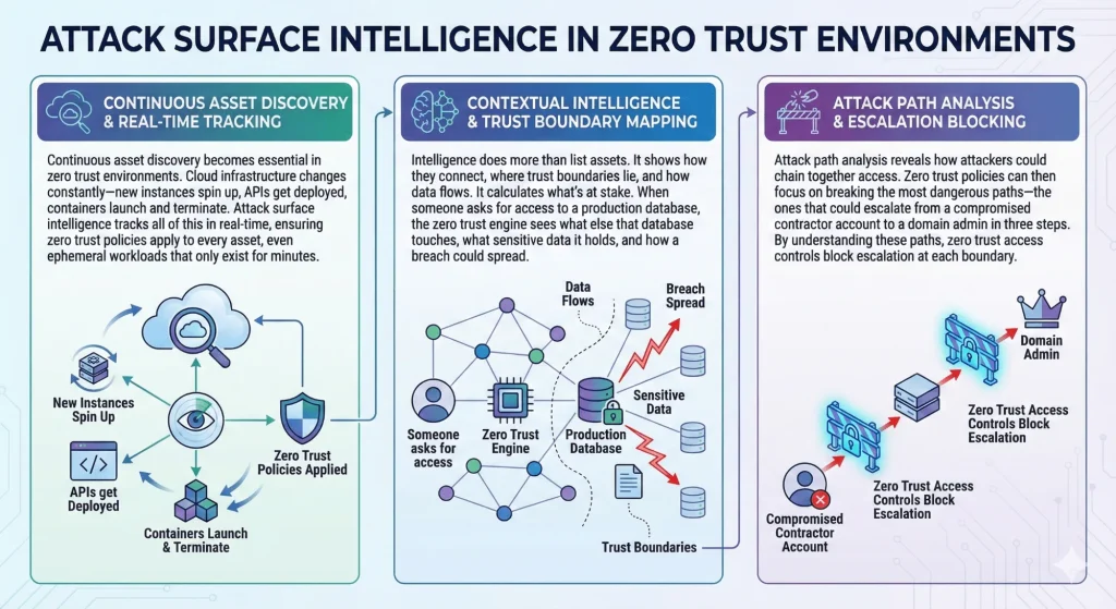Attack surface intelligence provides the visibility zero trust needs to make informed decisions. You can’t verify what you can’t see, and you can’t enforce least privilege without understanding what assets exist and how they connect.
